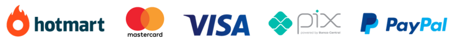 Você pode escolher entre Pix, cartão de crédito (à vista ou parcelado) ou boleto à vista, tudo dentro da Hotmart, com total segurança.